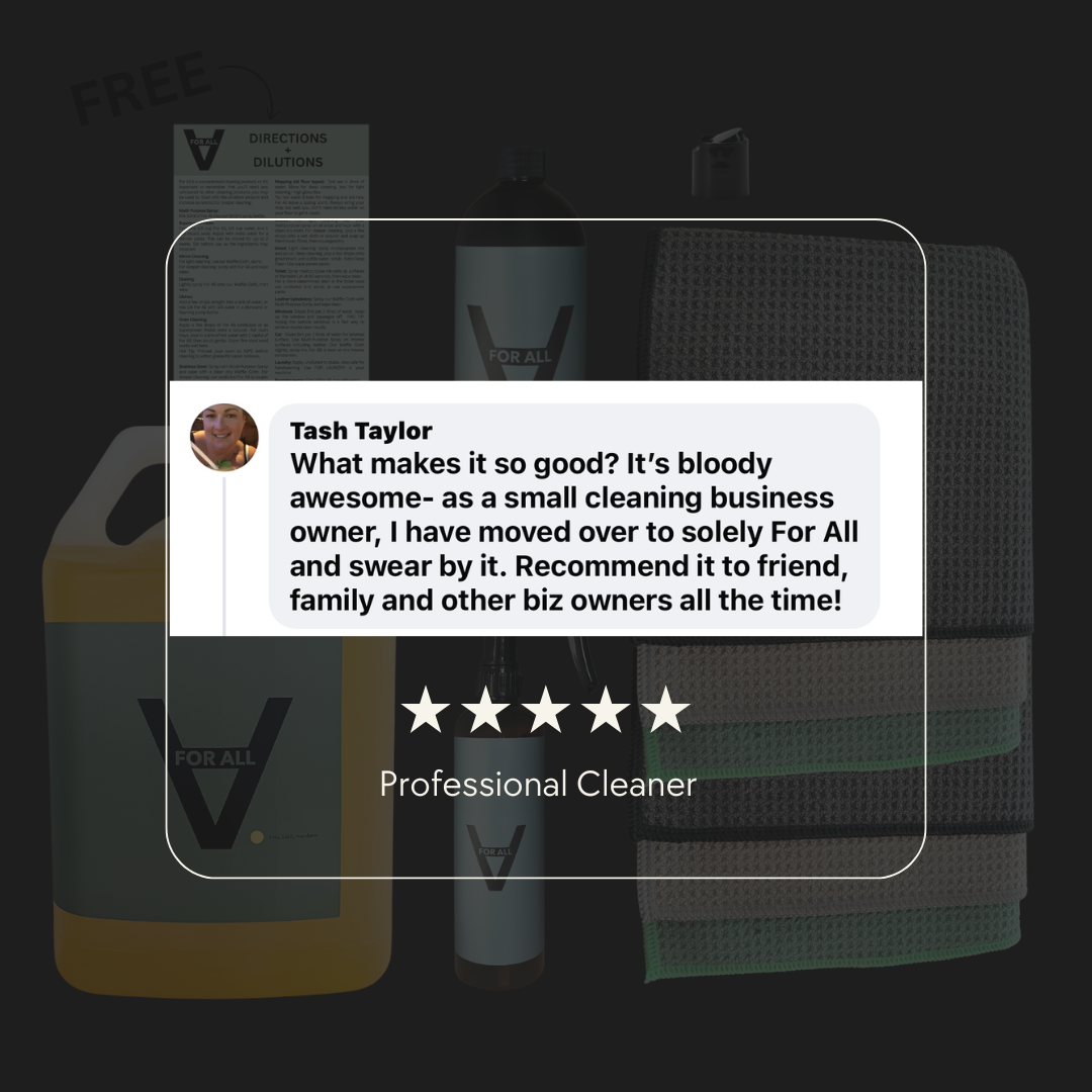 For All is a single cleaning product developed by a professional cleaner, safe for every surface in and around your home—and safe for you, too.